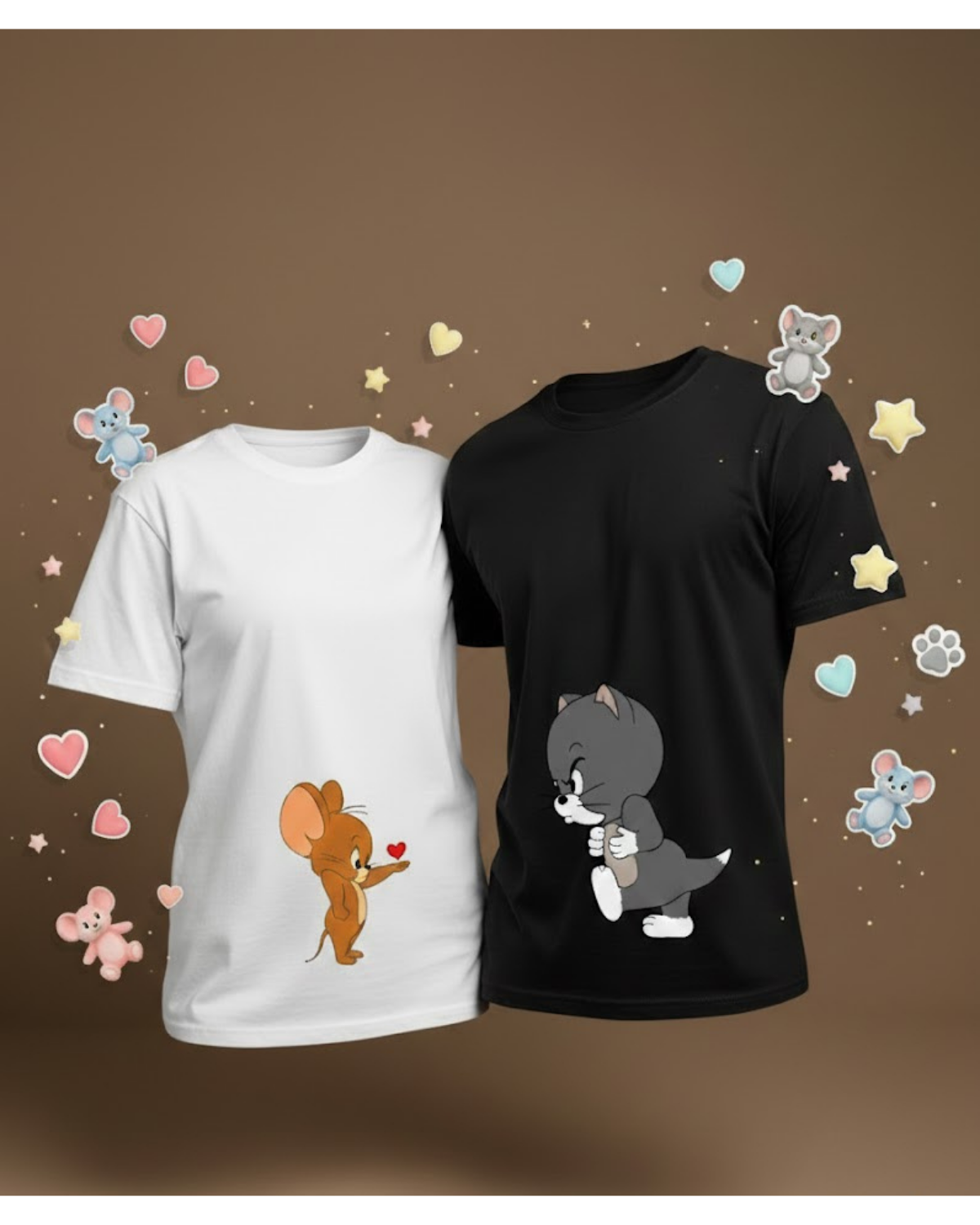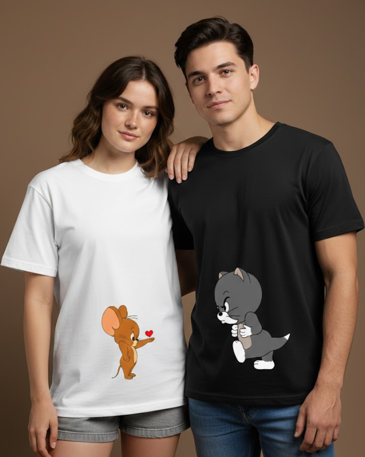 Soft, comfy 200 GSM cotton couple tees made for playful vibes and everyday love styling. Premium feel, perfect fit, all-day comfort.